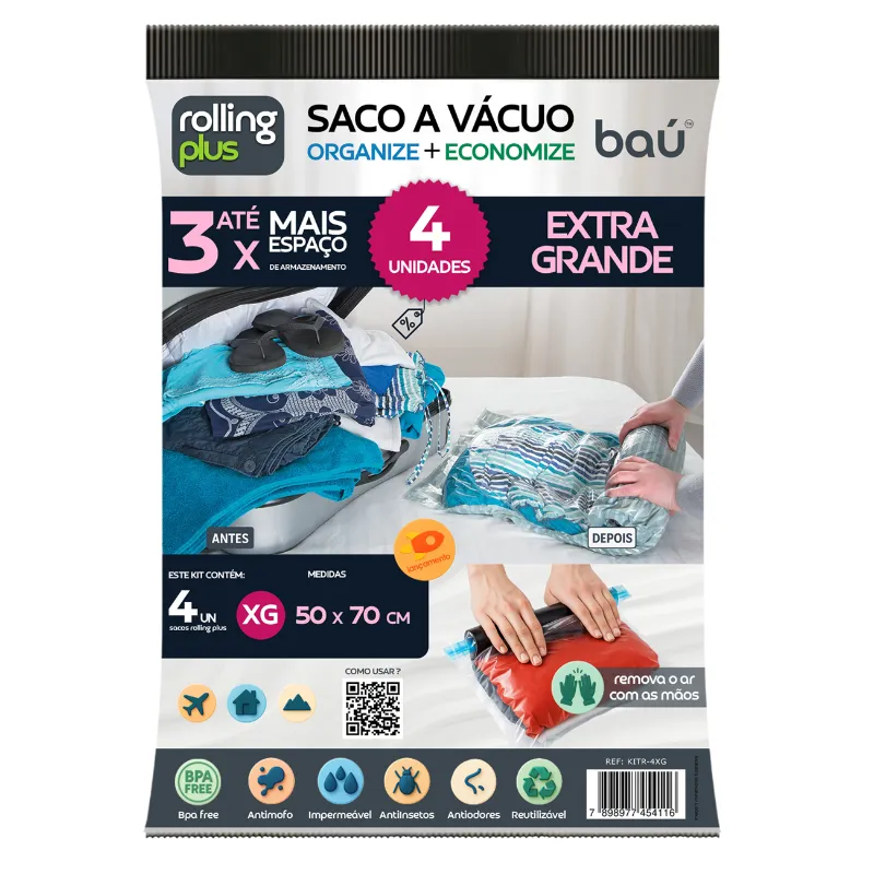 Kit 4 Sacos a Vácuo de Enrolar XG 50x70cm - Rolling Plus